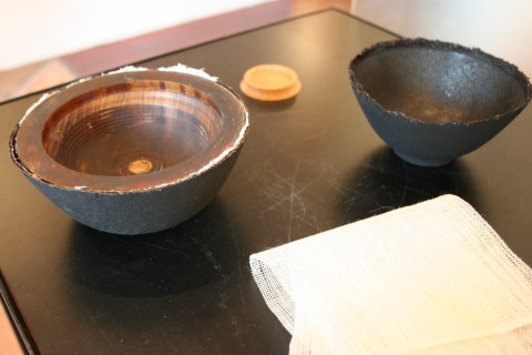 鎌田さんが手がけるのは、乾漆(かんしつ)による器。この技法、仏像などの彫像で耳にした方も多いのではないでしょうか。木でつくった型に麻布を貼り重ね、木製の高台を付け、薄い下地をした後に、漆を塗り重ねていきます。