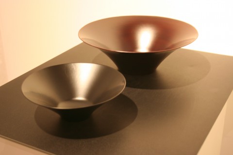 展示作品ではその他に、漆器では珍しい平皿やユニークな弁当箱なども。普段使いにできる漆器としてつくられた器は、鎌田さんの食卓ではそのままランチプレートなどに使うそうです。その美しい色とフォルムは、サボア・ヴィーブルのギャラリーでご覧ください。