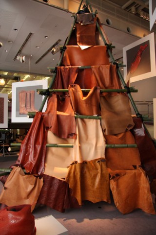 ▲昨年、東京で開かれたトスカーナ産植物タンニンなめし革の展示の模様