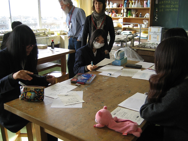 ・石巻西高校、石巻好文館高校の3年生とポストカード、ポスター、グリーティングカード、