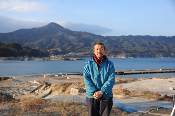 ▲“復興リーダー”のひとり、特定非営利活動法人吉里吉里国の代表、芳賀正彦さん。「映像ではなるべく余計なものを見せず語りだけ。言葉や眼、表情などににじみ出てくるものから、彼らが何をしてきたかという思いや内面を感じ取ってもらいたい。まさにそこがいちばん伝えにくいところだと思うので」と中村さん。写真/細川 剛