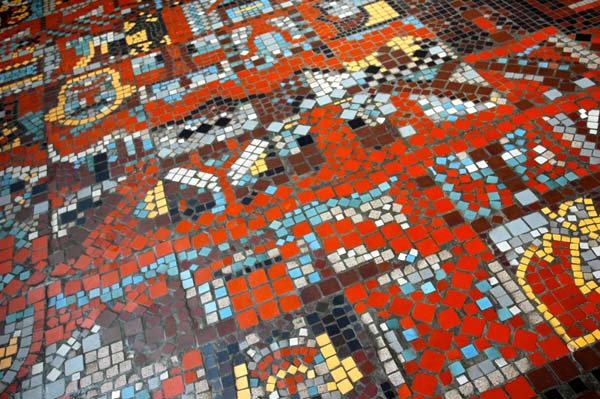 ▲ガラス屋根を支える4本の木の柱は人間とその文化の興隆、衰退、没落を象徴するセメントのレリーフでカバーしてあります。