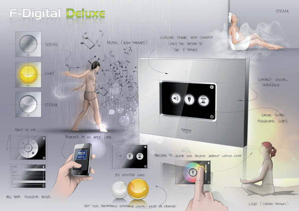 ▲「グローエ F-デジタル デラックス」のスケッチから、豊かで楽しそうなバスライフが伝わってくる