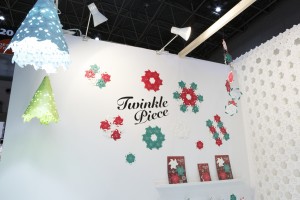 展示会場では、「Twinkle Piece」のパーツそのものがキラキラして女性受けすること、1枚12センチほどの大きさのパーツを折り曲げることで立体になったり、つなぎ合わせることで空間を生み出すことができるなど、見せ方を工夫したこともあって、通りすがりの来場者の多くが足を止めるブースになっていた。見本市のように無数のブースが並ぶなか、足を止めてもらうためには空間構成も重要なポイント。そして点字印刷に使われている技術からルームアクセサリーができると知ると、そのオリジナルな発想と商品としての完成度の高さ、市場性に関心を寄せる来場者が多かった。