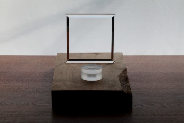 ▲最優秀賞「光学ガラスの特徴を活かした祈りのための道具」カドミ光学工業×三浦秀彦氏、久保井武志氏