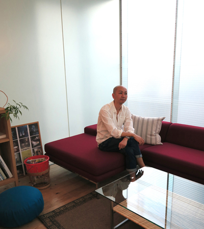 ▲ E&Yのショールームにて。松澤氏の前に置かれているテーブル「ハンモック」も2009年にエディションしたもの。