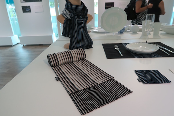 会場では140cm幅のテキスタイル「Brilliance of Heritage」とともに、これを張ったラウンジチェア(飛騨産業)のプロトタイプや、取っ手をつけて風呂敷バッグにしたものなどが展示された。リムによると「まずテキスタイルを多くのシンガポール人に見てもらい、小倉織について知ってもらいたい。そのうえで他のプロダクトに展開する可能性もあるが、縞のデザインだけ抽出するのではなく、あくまでもテキスタイル製品として打ち出していきたい」と語った。まさに日本とシンガポールの文化をひとつに織り上げたようなプロジェクト、今後の展開に期待したい。(文・写真/今村玲子)