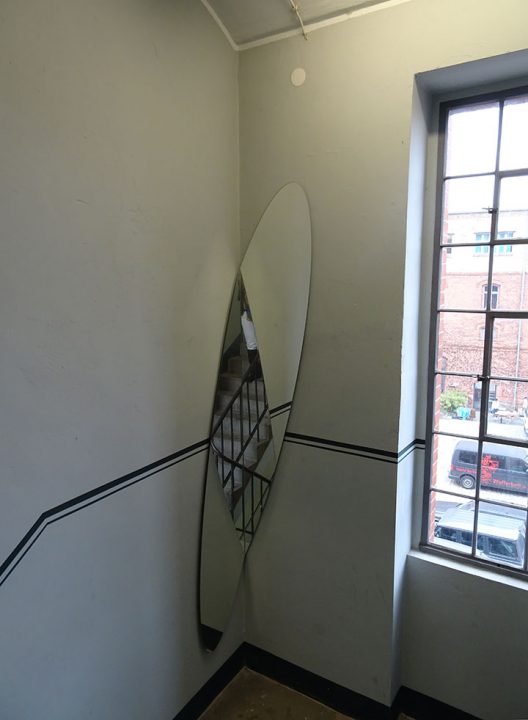 階段の踊り場にはエリアソンのミラーの作品が置かれ、まるで階段を行き来する自分を見つめ直すような気持ちにさせられる。