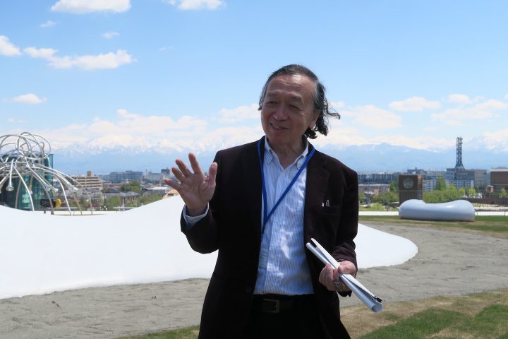 ▲「遊具は子ども向けだが、大人は散歩したり、夜景を楽しむことができます。特に日々表情を変える一期一会の立山連峰の景色を楽しんでもらえたら」と雪山行二館長。