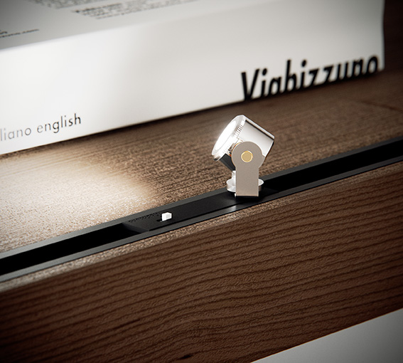 注目すべきは、テクニカル照明の「micromen」。1モジュールが50×13 mmという極小幅のユニットで灯具が自在に可動できるシステム。1wの容量でも24vの定電圧なので明るく感じられ、高い演色性(自然光が当たったときの色をどの程度再現しているかを示す指標)を実現しています。同社代表のマリオ・ナンニは「白熱電球と同等の演色性をLEDでも追求し、最高品質の光をつくることが前提」と言うとおり、技術に対しても妥協を許しません。