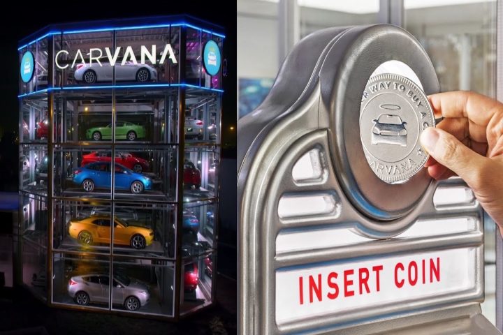 まず、会場近くに巨大なクルマの自動販売機を設置して人々を驚かせた「カーバナ」は、アメリカの中古車販売に革新をもたらしたユーズドカー・セラーだ。