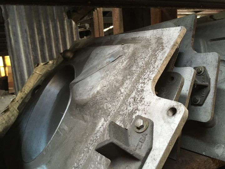 ▲鋳込んだあと。まるで発掘現場のようになる。煙はホカホカの状態の証。