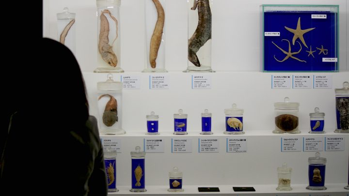 第二弾となる今回の展覧会は、「生物発光」「巨大生物」「超深海」や、深海の最新研究に注目している。採取された深海生物たちの標本はもちろんのこと、海底資源も見どころのひとつだ。海底のレアアースや天然ガス、石油などの存在も少しずつ明らかになっている。深海調査を支える最新のテクノロジーと、海底広域研究船「かいめい」などの模型も展示されている。