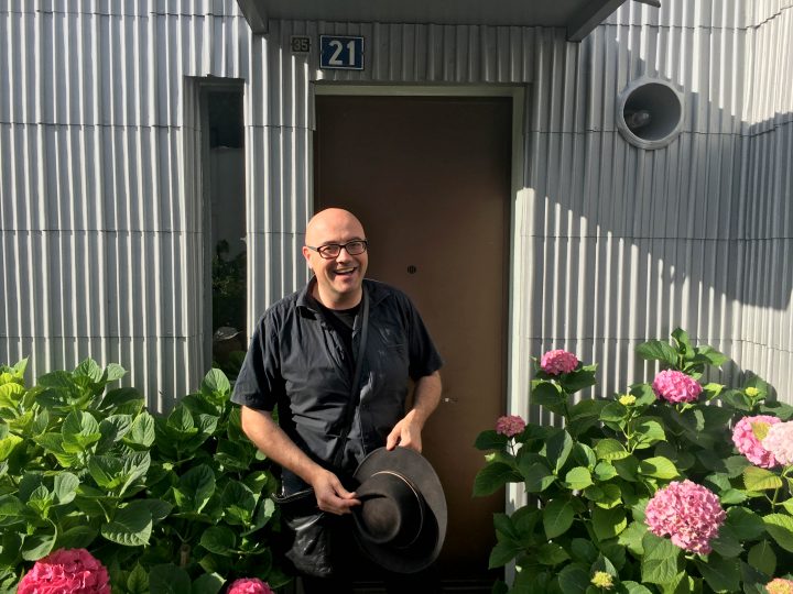 ▲本業の出勤前に晴れ晴れとした笑顔で現れ案内してくれたキュレーターのPatrick。