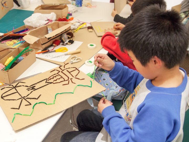 ▲プレオープン時には、ダンボールに穴をあけて紐を通し、好きなモチーフを描くワークショップも行った。