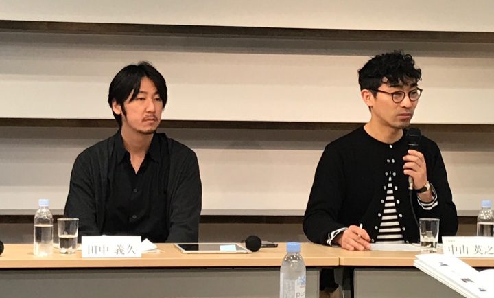 ▲記者発表会でのグラフィックデザイナーの田中義久氏(左)と建築家の中山英之氏