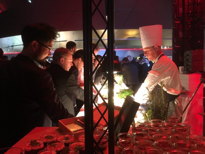 表彰式が終わると、iFを受賞した全員でパーティー。いつまでも、料理は続き、お酒も回ってきた。