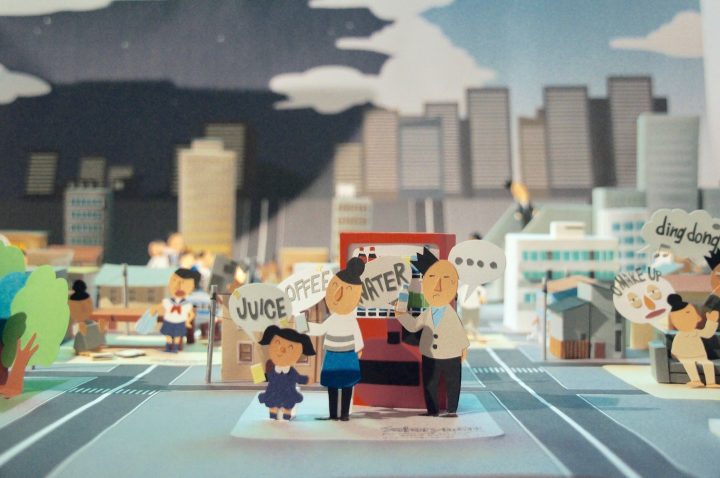 漆畑菜月さんは、外国人観光客に本当の日本を知ってもらうことを目的に、ペーパークラフトのジオラマとストップモーションのアニメーションを制作した。モチーフにしたのは、日本のサラリーマン。真面目、内気、働きすぎなどの偏ったイメージだけでなく、会社の姿と家の姿のギャップをユーモアをまじえて表現した。