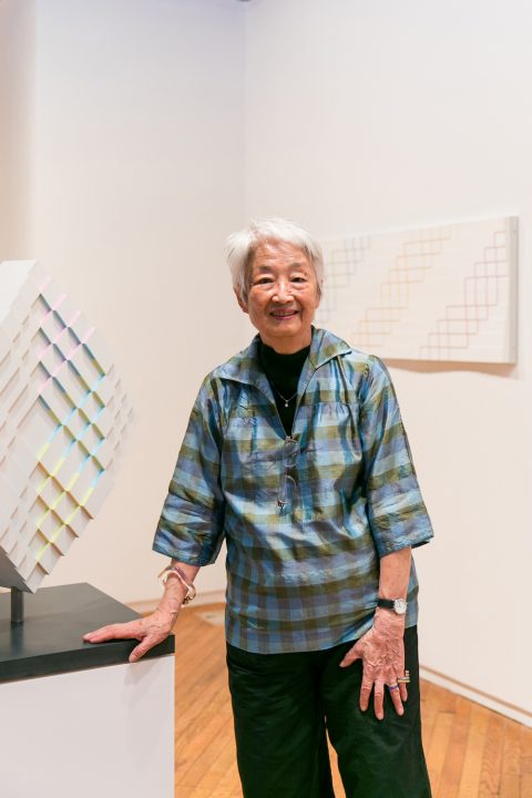 シャード氏はこれら作品が放つ個性を「かつて建築工芸を学んでいた吉川は建築空間において意図的に苔を生やしたコンクリートを用いてレリーフを製作している時期がありました。表現はあくまでも幾何学的なものですが、それだけではない彼女の内側から滲み出る光と影への繊細な関心や色彩が彼女の作品のエッセンスなのでは」と指摘する。5月27日(日)までの開催期間中に、ぜひ直接作品との距離を変えながらゆっくりと眺めてもらいたい。