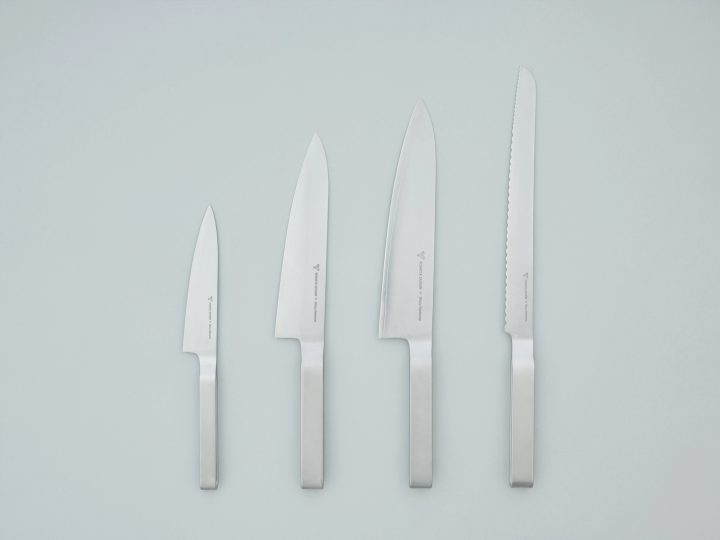 ▲「ラウンドバー 包丁」。岐阜県関市の志津刃物製作所とのプロジェクト。持ち手の部分にラウンドバー材が使用されている。