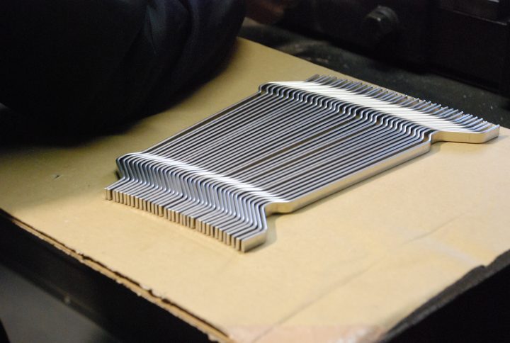 できるだけコストを抑えてつくるという課題もあったため、切削や曲げ、溶接、研磨といった基本的な加工でRの曲げ角度や幅を同じにするなど製造方法を簡素化し、機能性を持たせながらつくりやすいデザインを徹底して検討した。