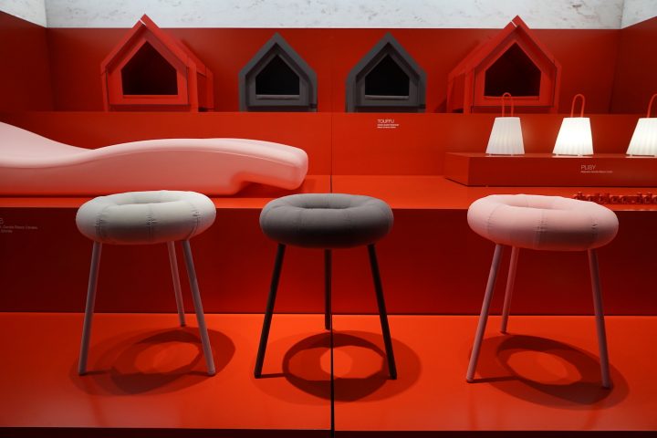 そのうちのひとつ、「Donut」は小林幹也がデザインしたスツールだ。その名のとおりドーナツ型をした座面はポリウレタンフォームでできていて、屋外での使用に耐える防水性の高いファブリックで包まれている。