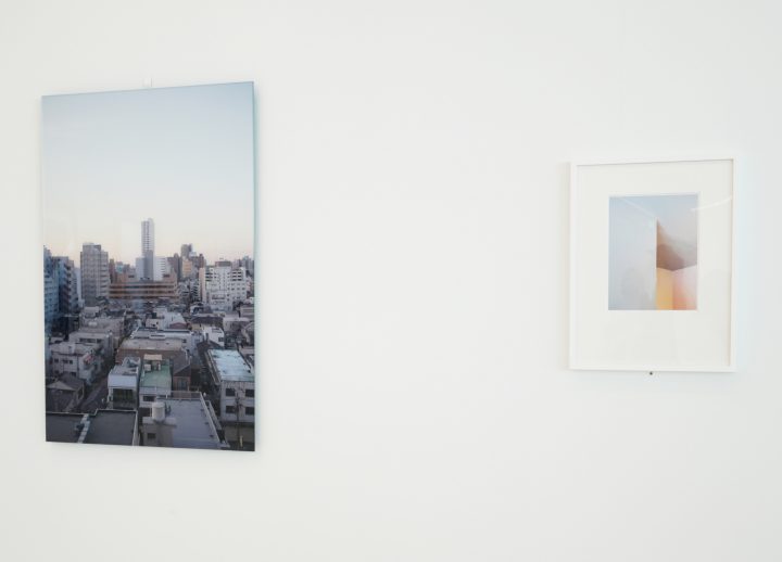 展示の冒頭を飾るふたつの作品がある。片方が、建築を撮りはじめるきっかけにもなった、2008年ドイツで目にしたバウハウスのマイスターハウス(ワシリー・カンディンスキーの家の居間)の天井詳細部の写真。そしてもう片方が、自宅の窓から見える生まれ育った東京の風景だ。