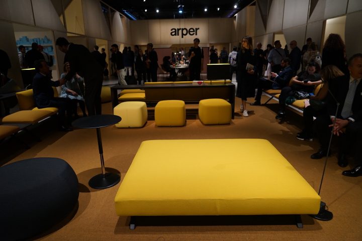 スタンドの最前面で展示されたミラノサローネ会場では、来場者がキークを自由なスタイルで試している様子が印象的だった。ミドルサイズのカウンターテーブルに腰掛けている人、オットマンをローテーブルのように使っている人……。ピックスとの組み合わせにも違和感がない。ピックスが空間に抑揚を加えるアクセントならば、キークはその空間自体を支える骨格にあたるだろう。主張しすぎることなく、かつ、役立つものとしての存在価値と機能性が最優先されるコントラクト家具として、ミラノサローネのような華々しい場でも確実に注目を集めた。