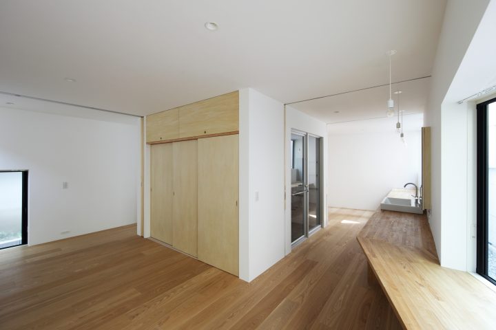 三木:クライアント夫婦お二人のために設計をはじめた小さな住宅です。将来的に子どもと三人で住めるような家を望んでいましたが、設計中にお子さんが生まれたので、できるだけ空間を広く見せたいと思うようになりました。