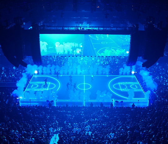 フルカラーのLEDビデオフロアおよびステージライトは、コンテンツをマッピングするために作成。200機のドローン、パイロテクニクス、空飛ぶフェラーリを演出、パフォーマンスに合わせてプログラミングも行った。