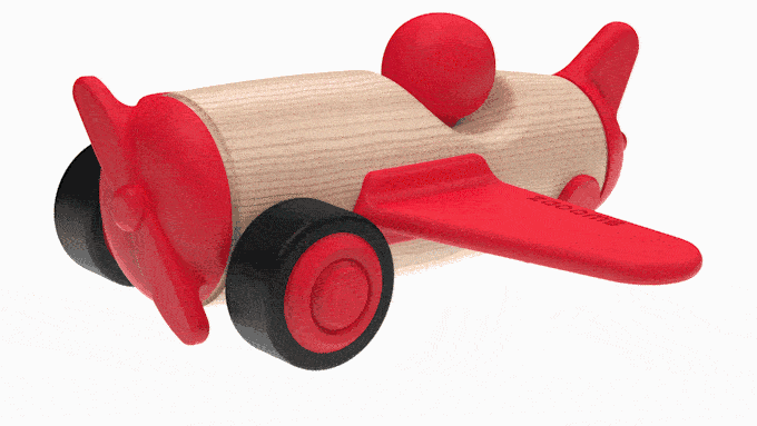 レースカー、プロペラ式の飛行機、ロケットの3タイプを用意しており、いずれも胴体部分は暖かみが感じられるアメリカブナを使用。全長は約16~20cmほどで胴体も太く、子どもからすればかなりしっかりしたサイズ感になっている。