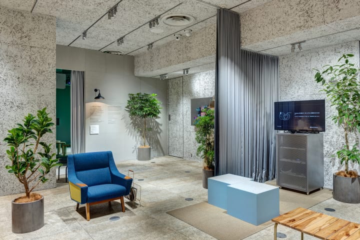 このプロジェクト「SONY SQUARE SHIBUYA PROJECT, 2018」は、数か月に1度展示が更新される企画展示エリアと、ラウンジエリアの2つのエリアで構成される。