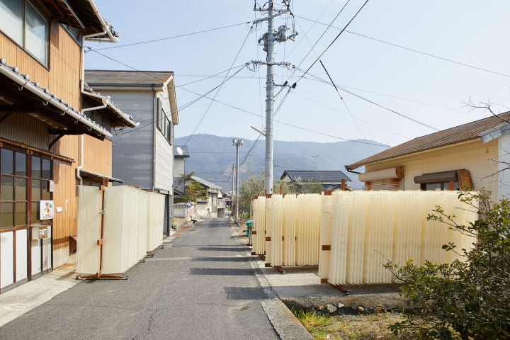 ▲晴天の空の下での乾燥作業。瀬戸内の澄んだ空気に触れる天日干しは、小豆島の素麺づくりで大切な工程の1つだそう。Photos by Sohei Oya