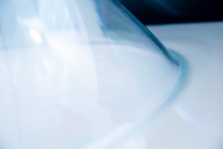例えば、鈴木氏がこれまで手がけてきた相模鉄道20000系をはじめとするモビリティデザインでは、全体を緩やかに曲げたフロントガラスが用いられる。しかしこの作品は、突出した部分と平らな部分がひとつのガラスのなかで共存し、それがこれまでに見たことのない不思議さと驚きを与える。実際、AGCとしても初めて取り組んだ形であり、鈴木氏は同社の成形技術の高さを伝えることができたとその意図を振り返る。