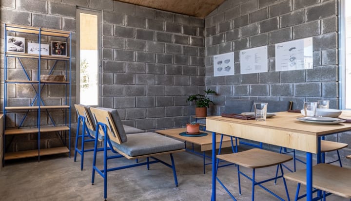 「コレクション1」は、シンプルな無垢材のフレームと天然素材で作られたもので、ブラジルのモダニズムと地元メキシコの家具にインスパイアされたベーシックな形状としっかりとしたデザインが特徴。互いを補い合いながらプロトタイプ住宅の空間を決定している。