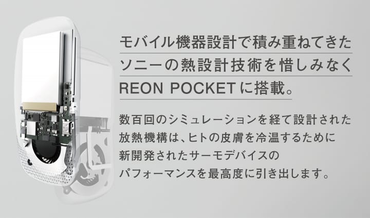 この「REON POCKET」は、端末を専用インナーの背面にある格納ポケットに装着して使用するもの。インナーウェアを着用すると端末が首もとにフィットする設計で、直接首もとを冷やしたり温めたりできるのだ。