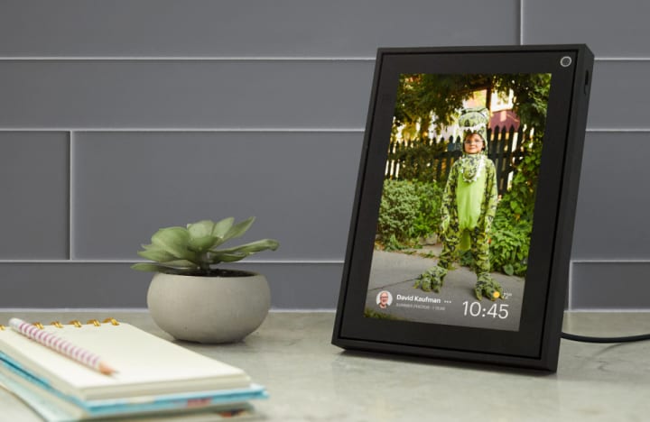 PortalとPortal Miniは、フォトフレームのようなデザインで、自宅のいろんな場所の置けるサイズのデバイス。Portal Miniは8インチディスプレイを搭載しており、価格は129ドル(約14,000円)、Portalは10インチディスプレイとひと回り大きくて179ドル(約19,400円)。