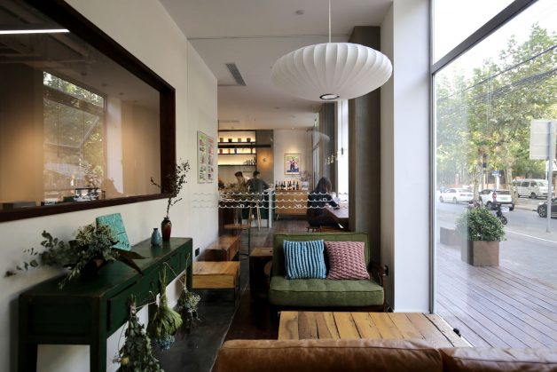 裏庭には小さなプールとハーブ類を育てる庭があり、カフェではこの庭で育てる自家製ハーブやスパイスをアクセントに地産の野菜や果物をふんだんに使用。また、ショップは、フラワーショップを中心に上海在住作家による食器など、小さな美しさを楽しむことのできる商品をセレクトして販売しているという。