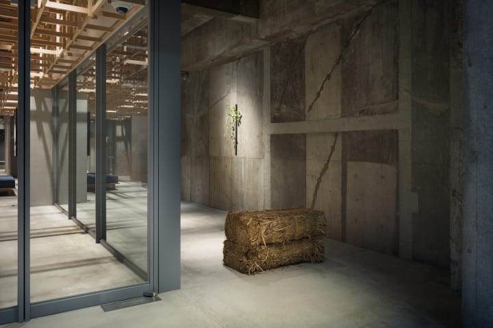 金沢の茶室を感じさせるティーサロンを1階に設けることで、ホテルが地元に組み込まれ、さらには市内の他の場所へも繰り出すようにうながしている。また、日本の伝統的な建具を使い、ロビーの天井には木製の格子を組んだ。これは、スペースを区切るために使われるモジュール式のウォールパネルを支えるものにもなるという。