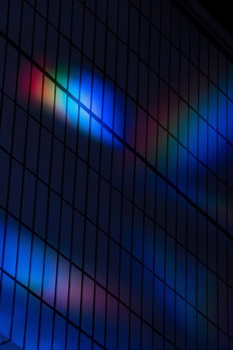 ▲夜間はオブジェ自体にライトを照射させることで、プリズムを人工的に発生。天気の良い日中は太陽光がその代わりを担う。