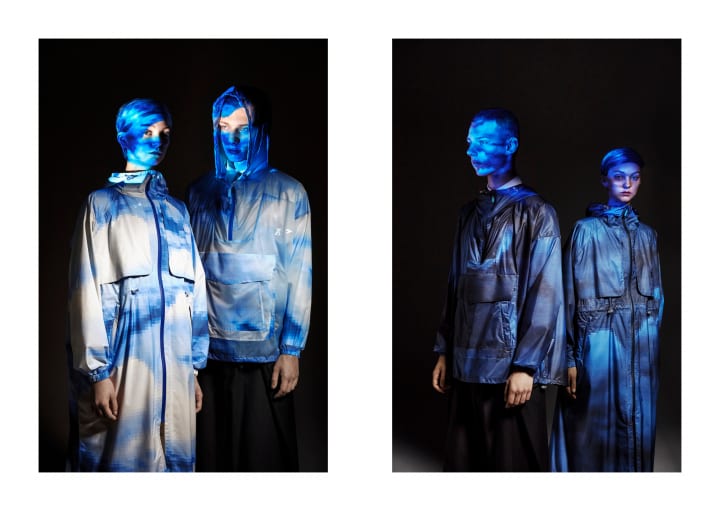 生地は、パーカー・オーガナイザー・トート向けとなる透けるほど薄く、軽く、柔らかな風合いの「Humming bird-PIXEL SKY-」と、レインコート・傘向けとなる撥水性に優れ、透湿性も高い「Emperor penguin-PIXEL SKY-」の2種類を用意した。