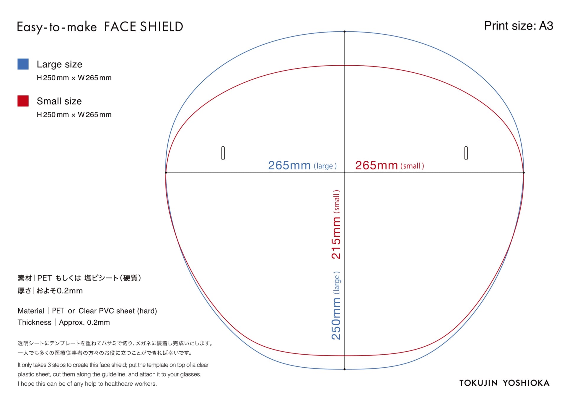 吉岡は、「感染症の現場で闘う医療従事者の方々へ、心から感謝と敬意を表します。世界的に医療物資が不足している中、非常時に簡単に作ることができる、フェイスシールドを考えました。