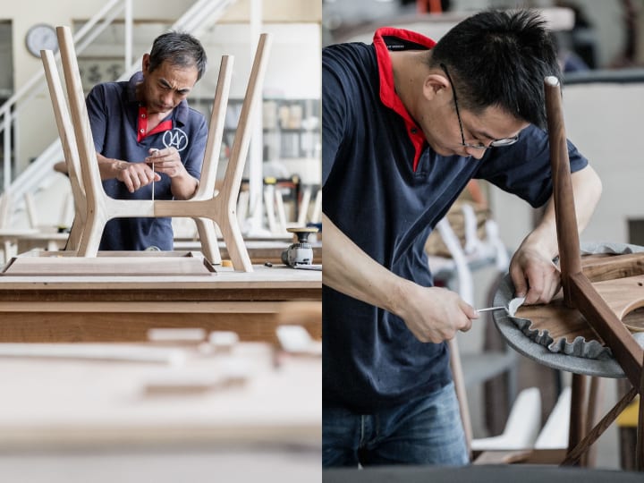 「伝統に裏打ちされたヨーロッパの家具は見事です。しかし、労働者の権利が守られ、1週間の労働時間が規定されているため、生産能力に限界があります。また、高技能の職人は賃金が高く、高度な技術を要する家具は自ずと高価で希少なものになってしまいます。一方で、中国にはヨーロッパや日本の木工職人にも引けを取らない、腕と知識を持つ職人がたくさんいるのです。彼らの多くは向上心旺盛で熱意にあふれ、早朝から夜遅くまで働くことをいとわない。ヨーロッパの家具ブランドが試作品の製作に通常1年から1年半かかるところ、中国ならばその半分の期間でできます。このスピード感が中国の家具づくりを支えている。そんなダイナミックな環境と高度な技を生かして、欧米の家具の真似ではない、中国ならではの家具づくりができると確信したんです」。
