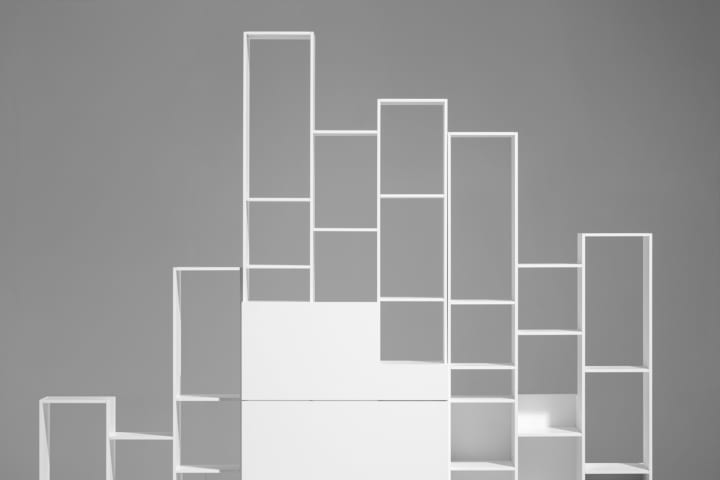 ダイナミックな形状をもつシェルフシステムで、高層ビル群のような都会のスカイラインをイメージさせるデザイン。下部はゆったりとした収納となっており、上部は複雑な起伏をもっている。