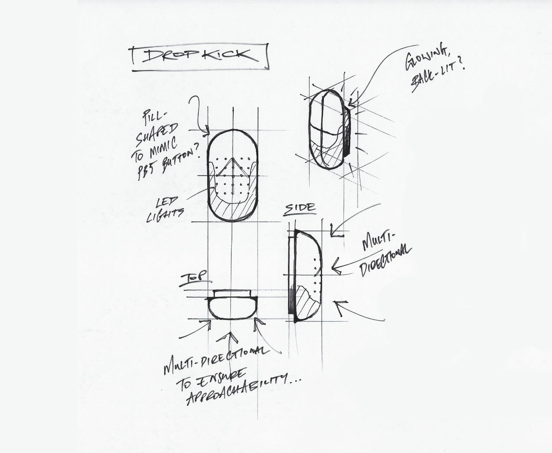 歩行者ボタンとしては、同国の工業デザイナー David Woodが1970年にデザインした「PB/5」ボタンが現在でも使われているが、これにインスパイアされた「Dropkick」は、カプセル型のボタンにすることで、どの方向からでも押せるようになっている。