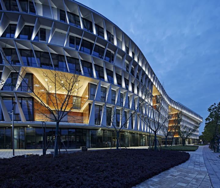 また、ファサードには薄いコンクリートの層が張り出しており、そこに船の帆のような穿孔メタルを取り付けることで、ファサードの向きの変化に対応。通気がよく、自然の光が差し込み、建物のエネルギー消費を減らしているそうだ。![]()