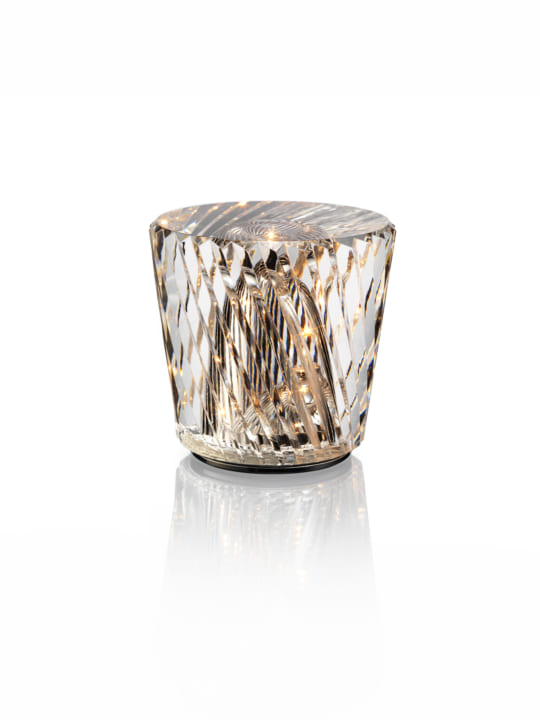 タンブラーグラスを思わせる美しいデザインの「Xtal」のほか、ダイヤモンドカットのような豊かな表情をもつ「Xtal Acrux(クリスタル・アクルクス)」、螺旋状に大胆にカットされた華やかな彩りのある「Xtal Becrux(クリスタル・べクルクス)」と、デザインは3種類。デザインはプロダクトデザイナーの小関隆一が手がけた。