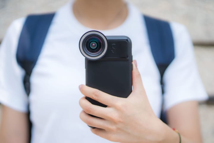 ケースの横に着いた部分は、滑りにくいグリップとして機能。スマートフォンを立てても寝かしても、このグリップは手のなかにしっかりと収まってくれる。レンズやフラッシュのようなアクセサリーを付ければ、本格的なカメラが楽しめるだろう。