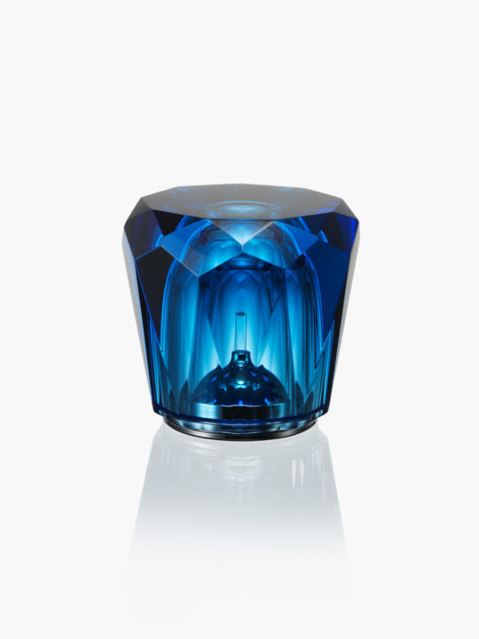 2015年のミラノデザインウィークで初披露されたコンパクトなコードレスランプ「Xtal」。クリスタルガラスのランプシェードは、削り出しから研磨まですべて高度な職人技による手作業で仕上げられており、型を使用した大量生産では実現できない透明度と完成度が特徴だ。