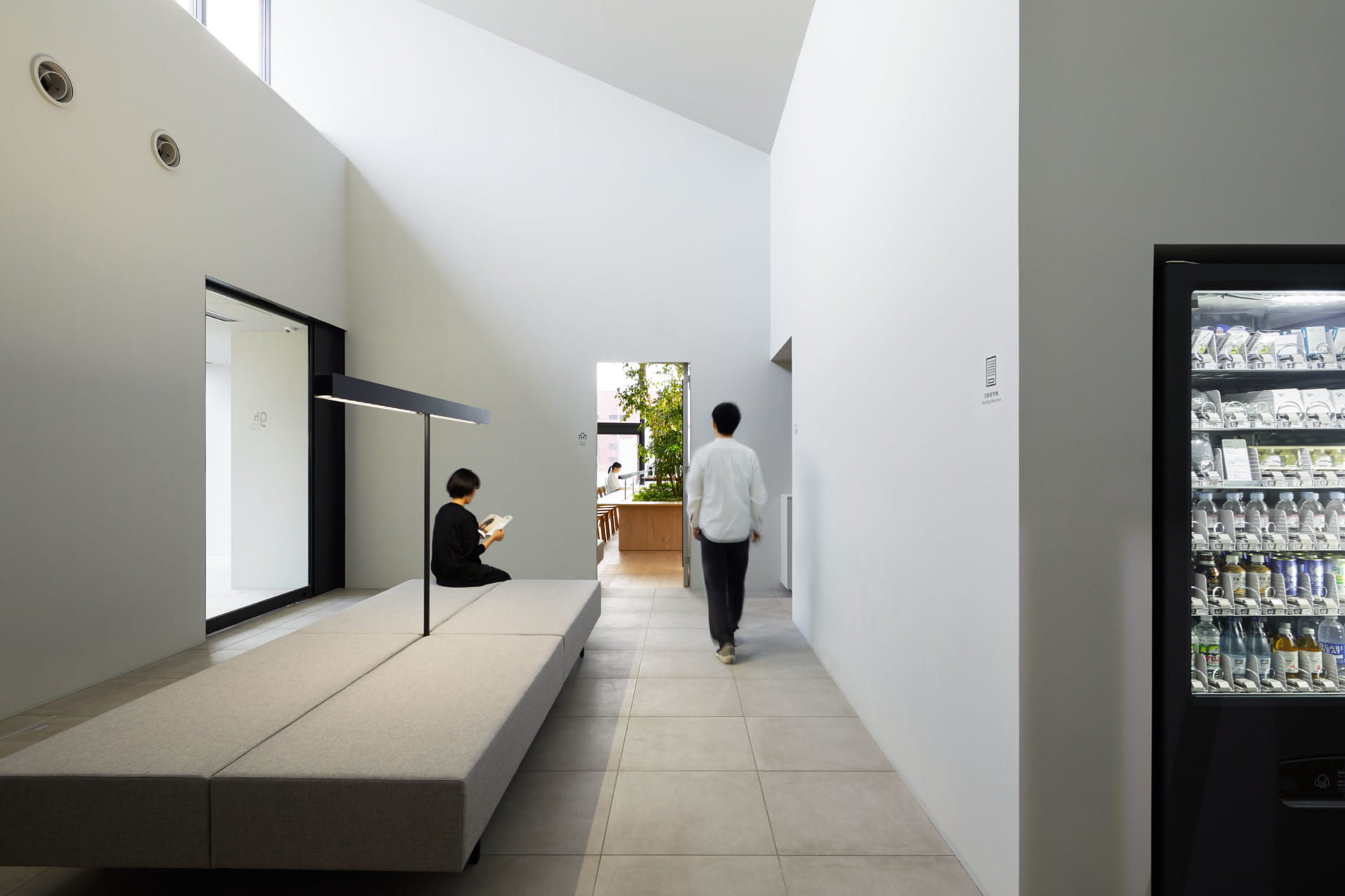 地上9階建ての鉄骨造で、1~2Fはテナント、3~9Fを9hが運営しており、9Fをエントランス・ラウンジで構成。周辺は商業ビルとオフィスビルに囲まれているため眺望は望めないが、その代わりとして大きなボリュームをとり、十分な自然光を取り込んでいる。